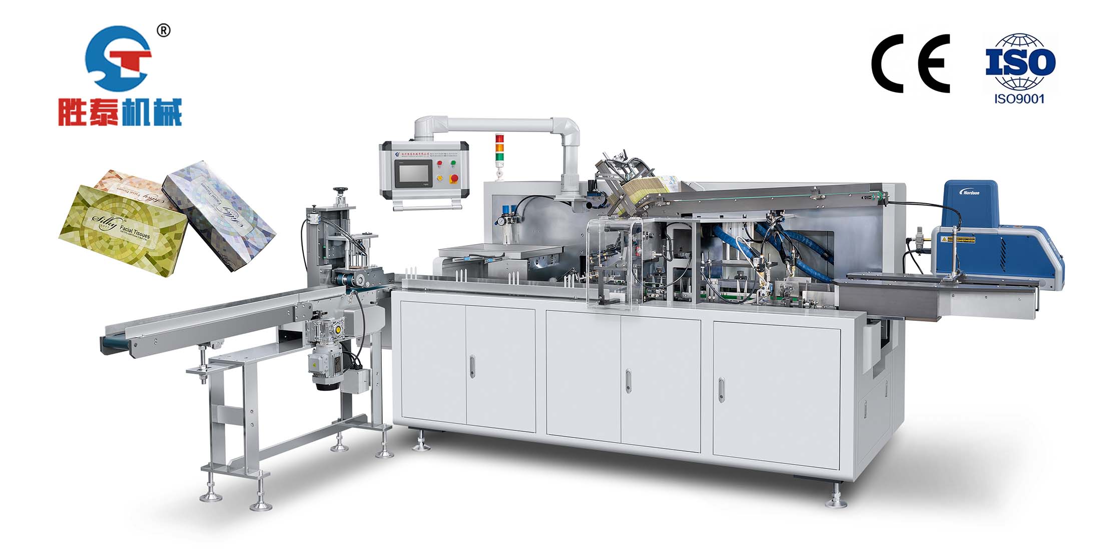 產(chǎn)品概述:紙巾自動裝盒機主要用于衛(wèi)生用品、日用品等產(chǎn)品紙盒折盒包裝。本機器采用一系列的機械傳動和光、電、氣的配合來自動完成送料、分料、送盒、開盒、裝物料、檢測、噴膠、封盒、剔廢及成品輸出等工序完成產(chǎn)品裝盒。