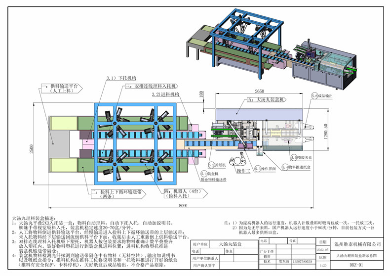 1、大藥丸平疊2X3入托裝一盒;物料自動理料,自動下托入托,自動加說明書。蜘蛛手帶視覺吸料入托,裝盒機穩定速度30-70盒/分鐘。